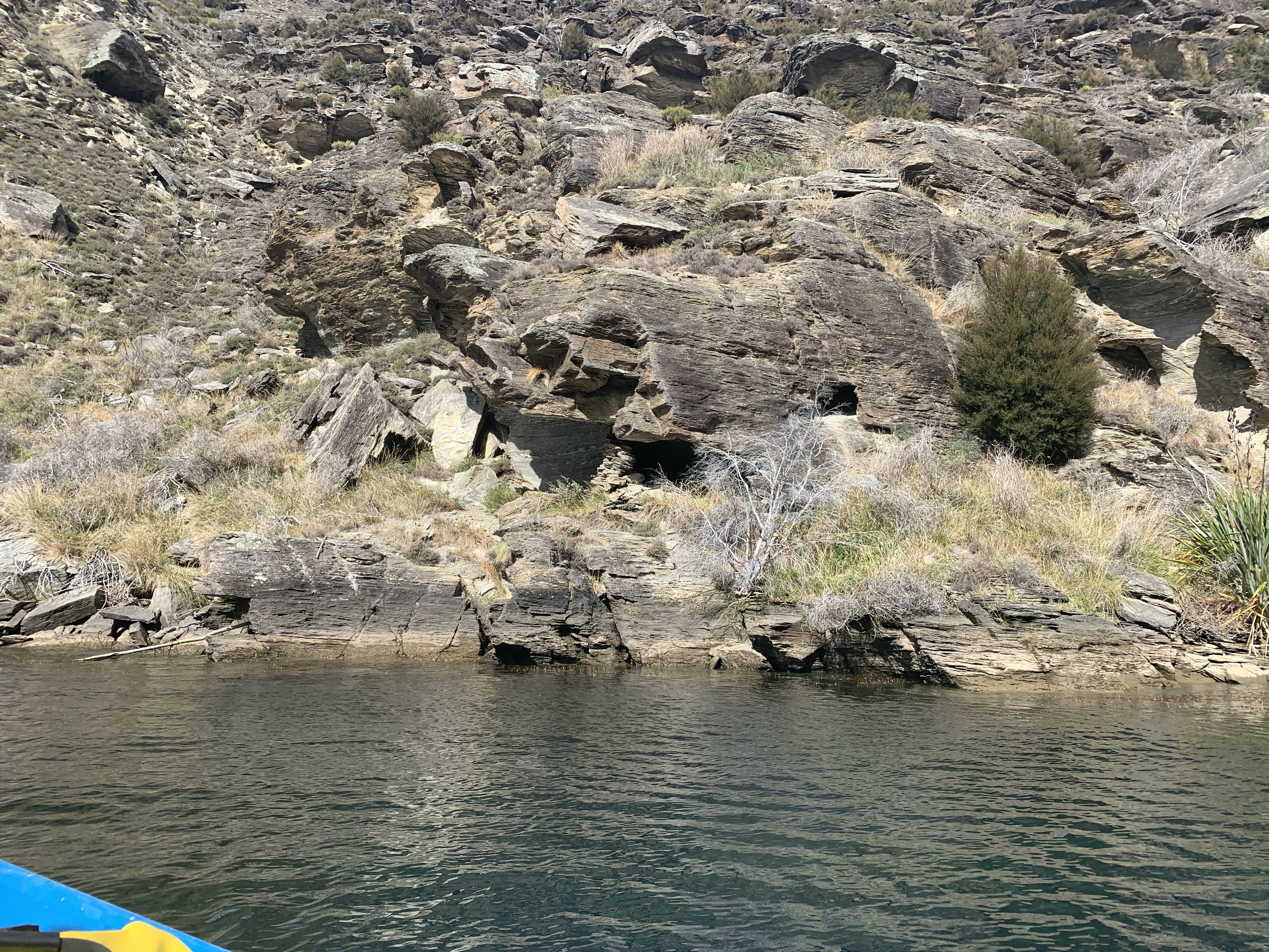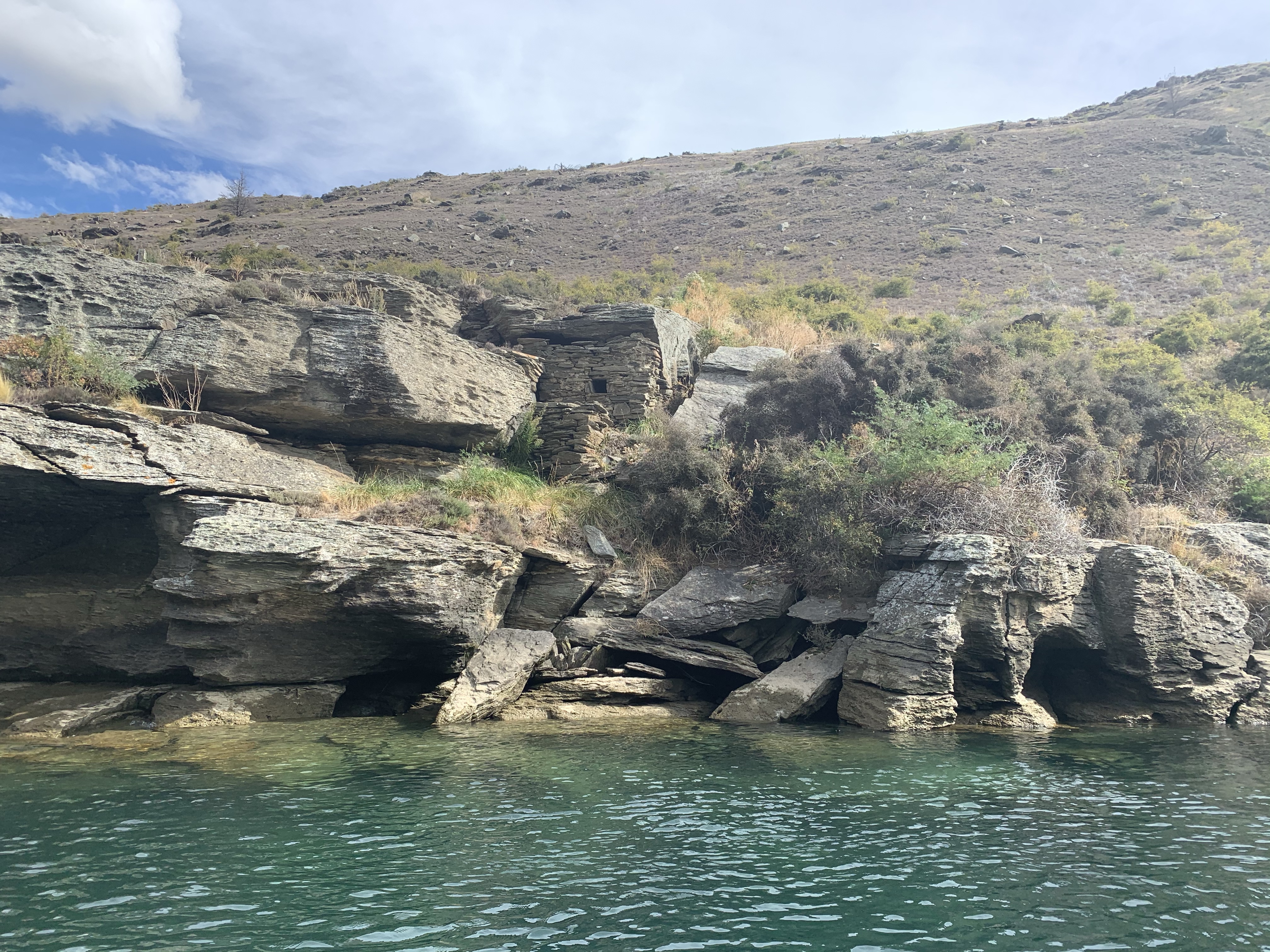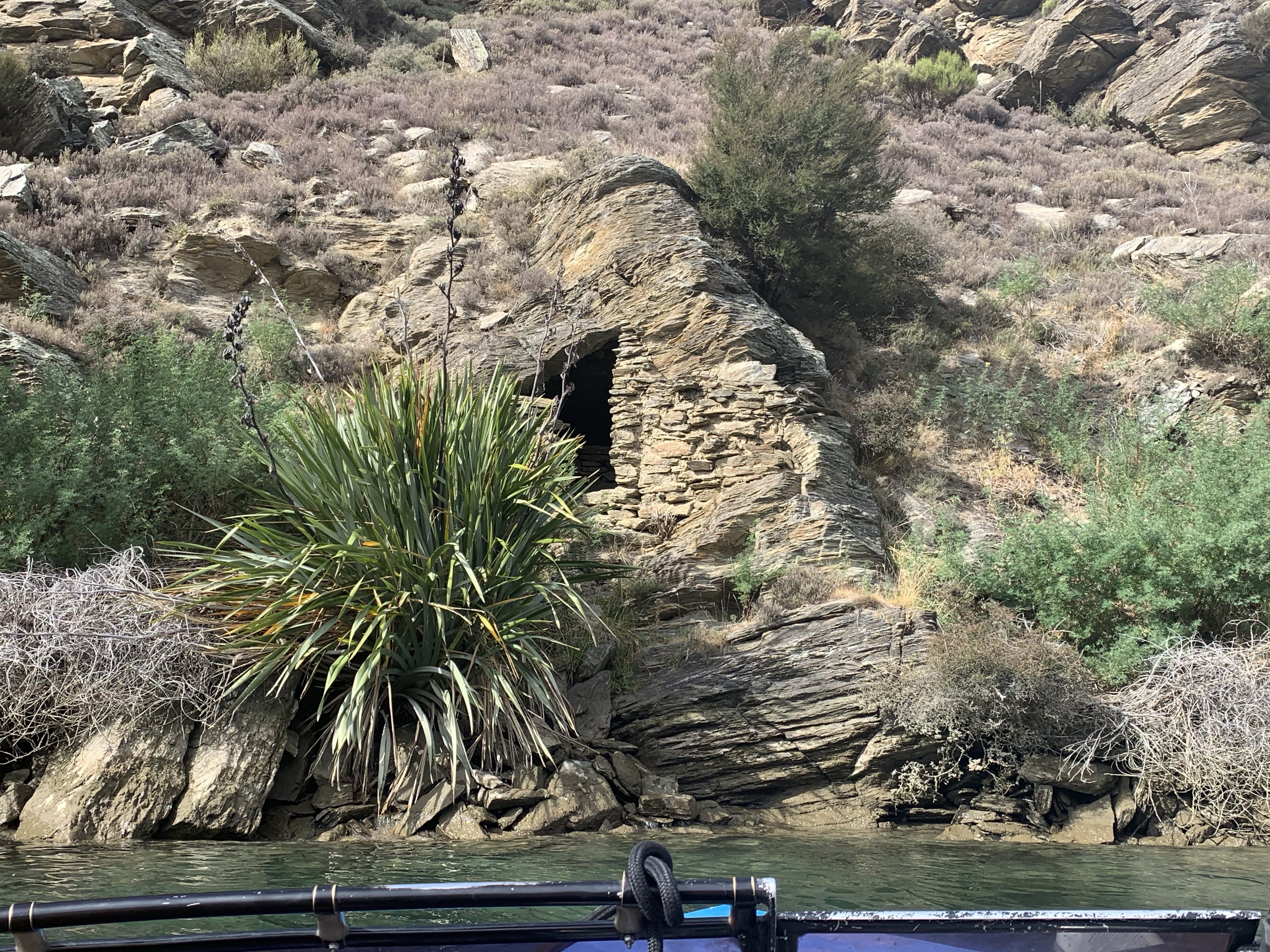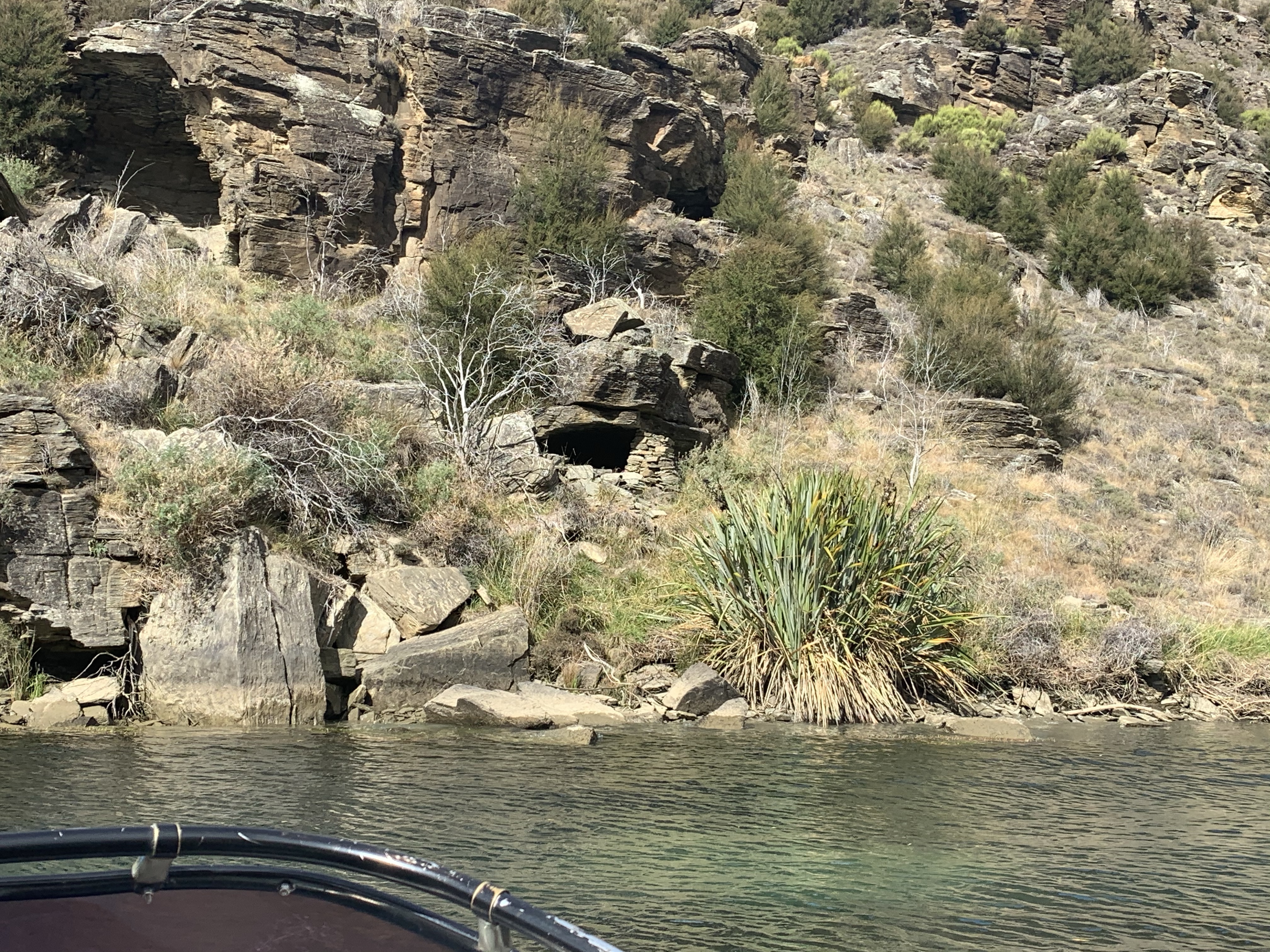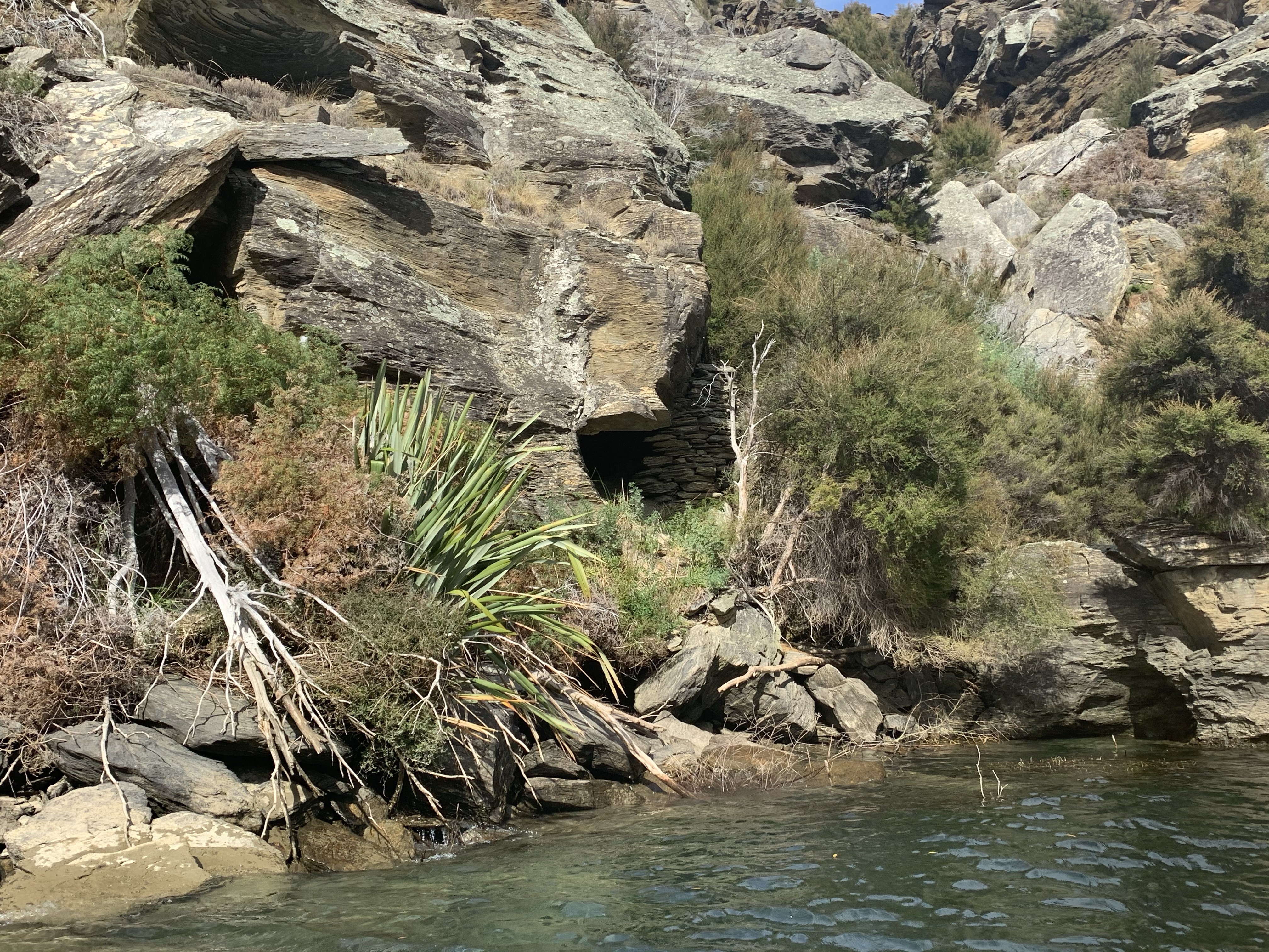 There are lots of tiny stone huts used back in the gold mining days still standing, untouched. A natural overhang would be blocked up with rock to make the most rudimentary of shelter. I cannot imagine how tough life would have been for miners, the work was done in the harsh Otago winters when the river was at its lowest, it must have been so bitterly cold. With no trees in the gorge the only means of heating was from supplies brought in with such great difficulty. That anyone could endure the it at all gives a small insight into the irresistible nature of gold fever.