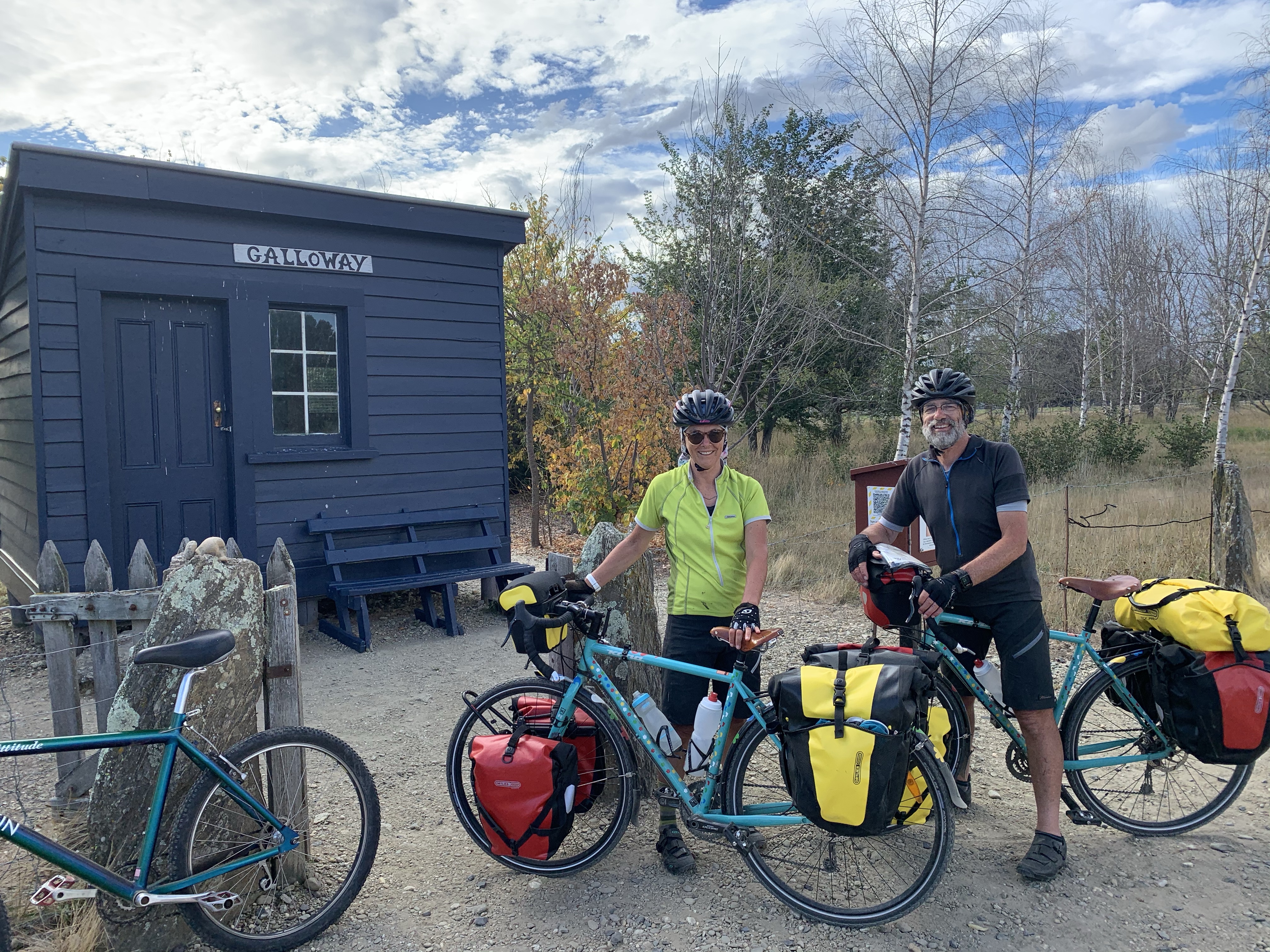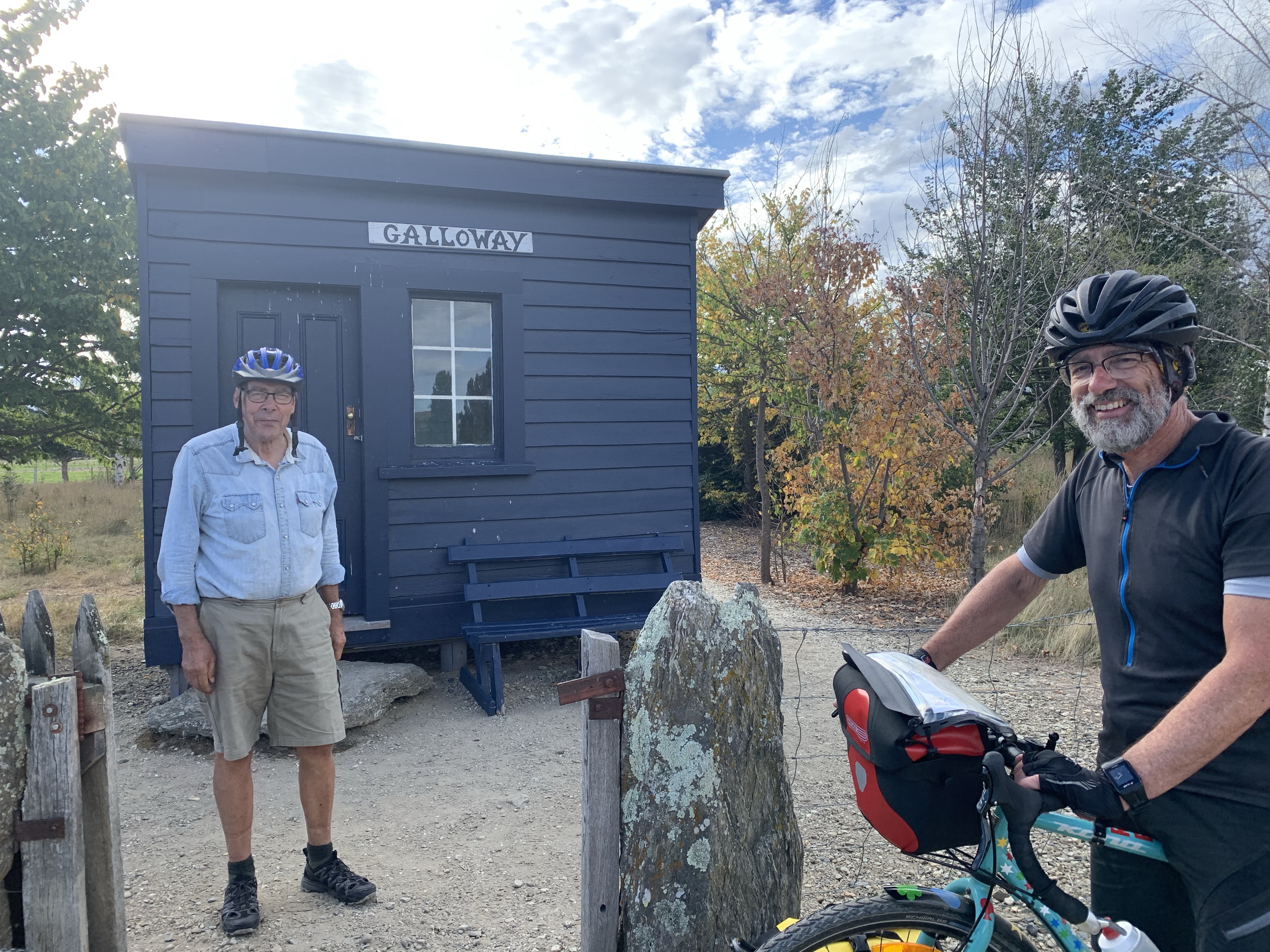 Heading through Alexandra, we started the Otago Rail Trail, riding through to Galloway, where Rolf was waiting for us at the old Galloway Station, such a lovely welcome & so typical of this Couple.