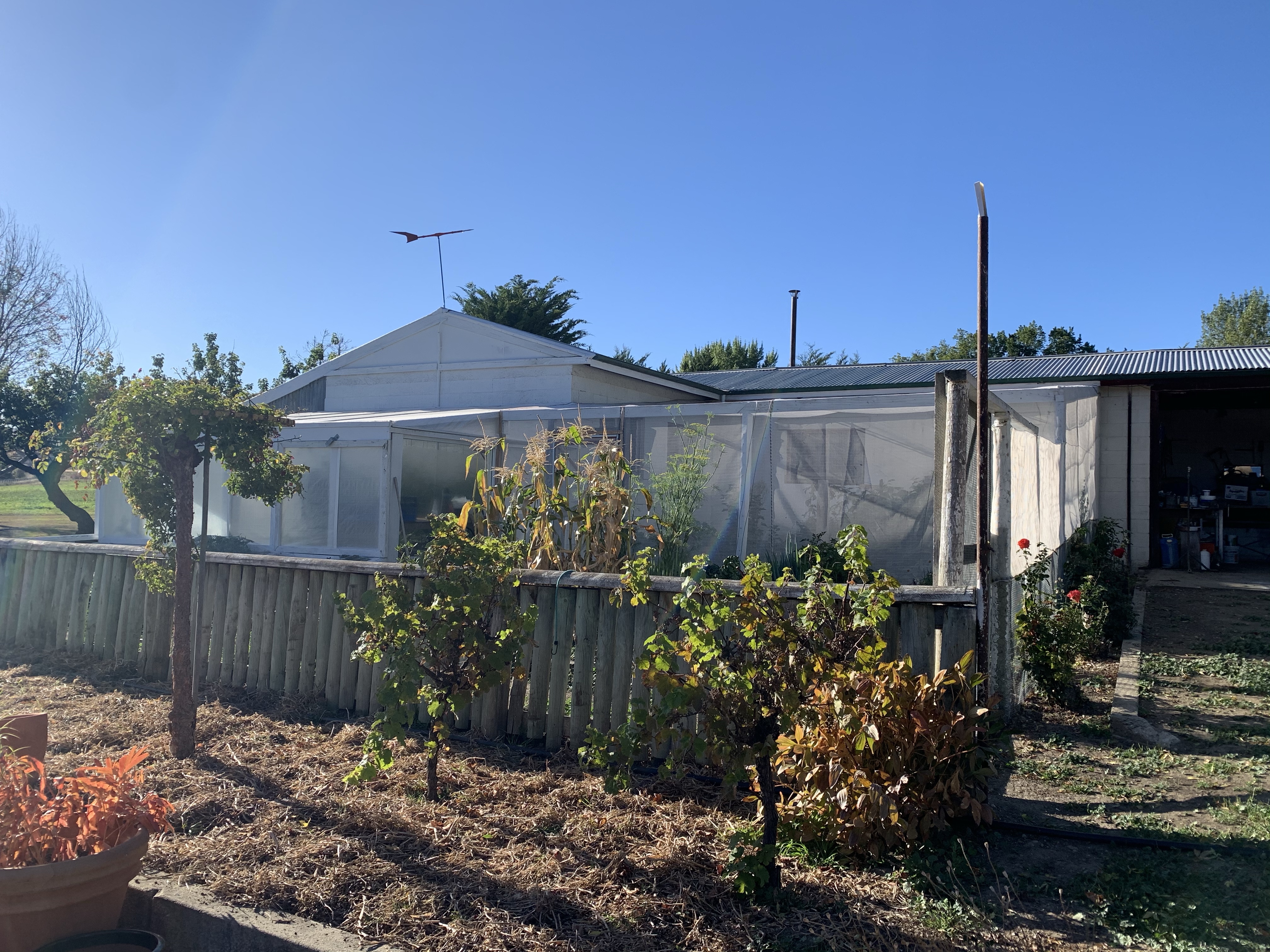 Niki & Rolf have a lovely 5 acres or so in Galloway with beautiful vegetable gardens & fruit trees. Their property is bordered by a small irrigation canal which is used to flood irrigate the one large field once a fortnight – so interesting to see up close. They’ve been at this new smaller property just a few years & their industry is obvious!