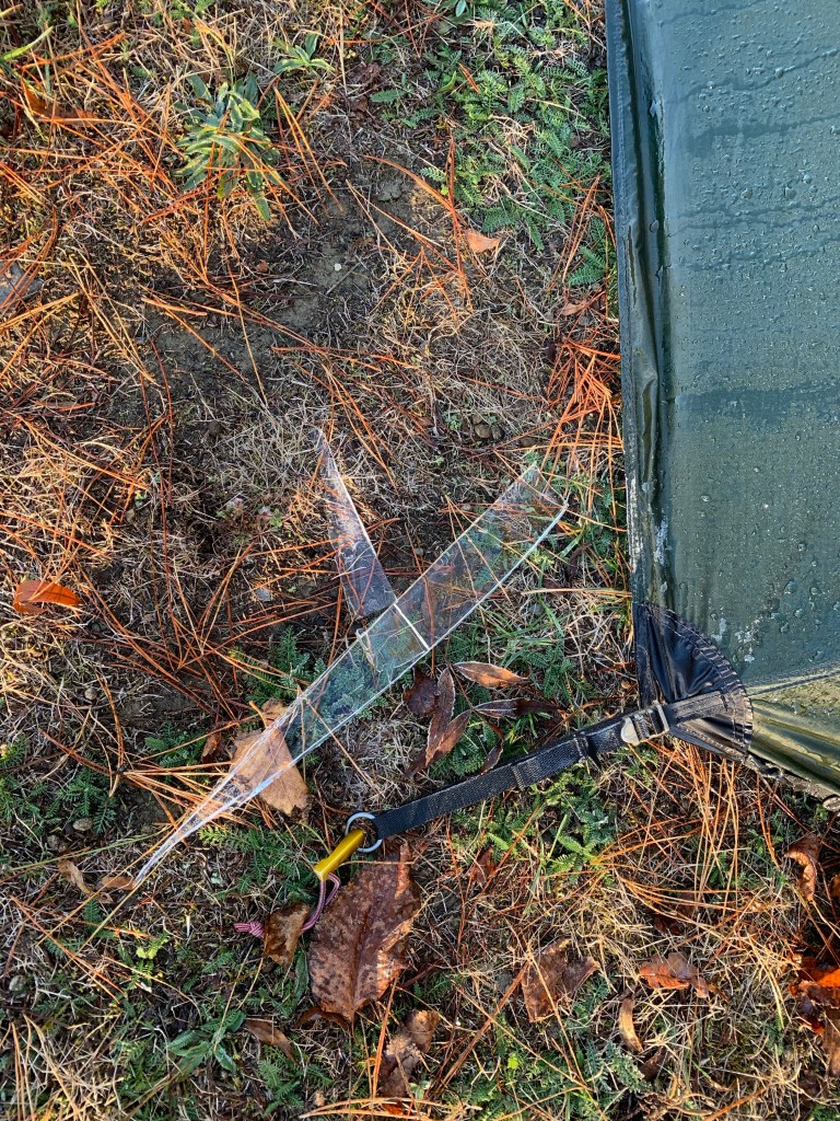 It was getting colder as the evening wore on and not surprising to find a real frost had visited us overnight, leaving us with ice in a small pocket at the front of the tent.