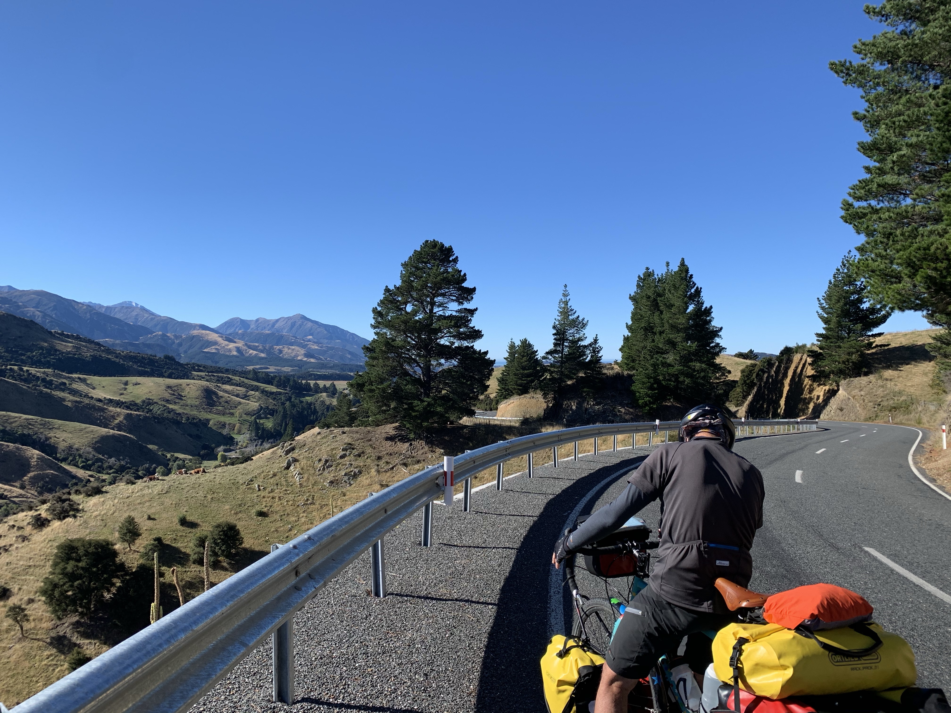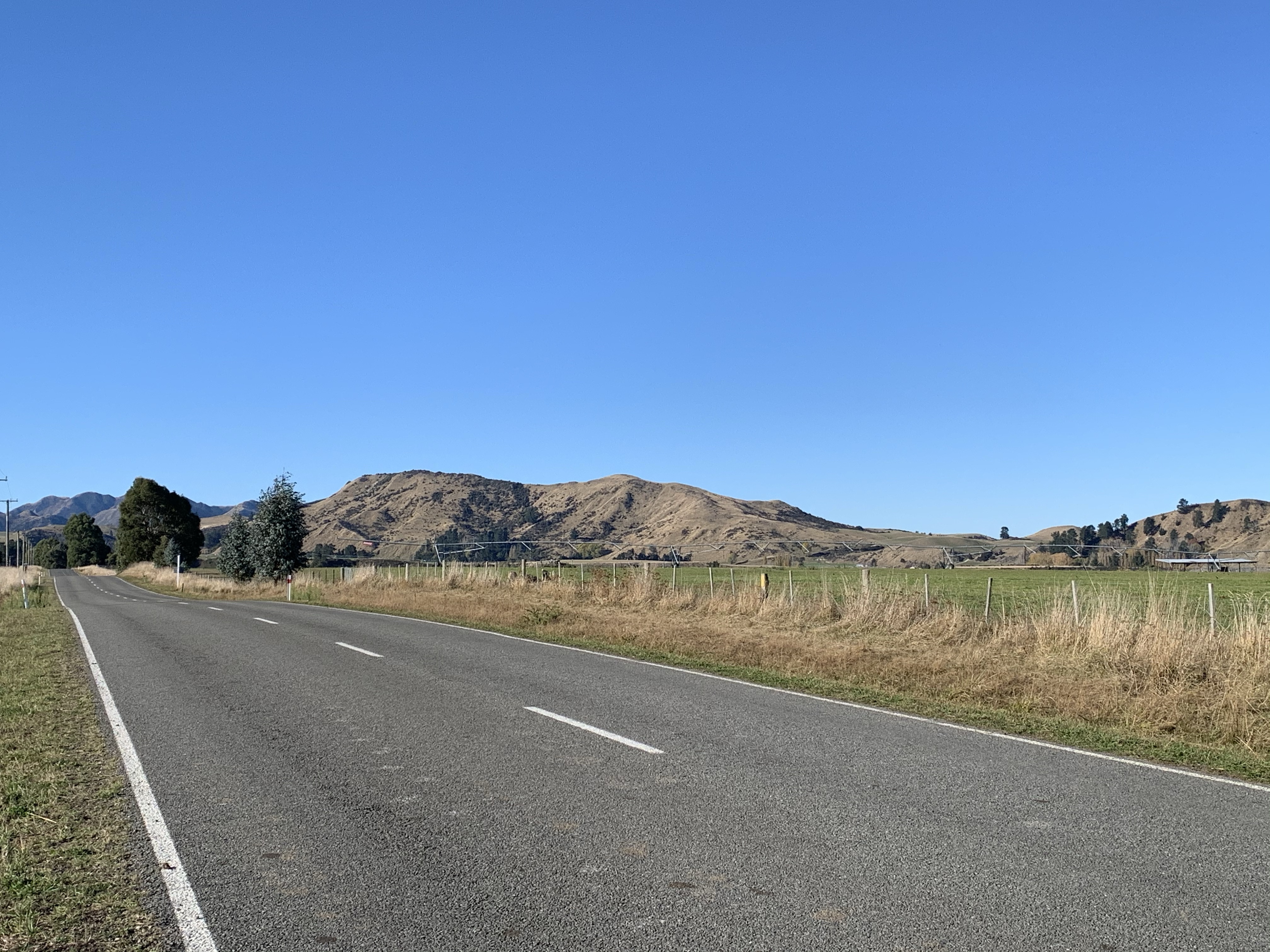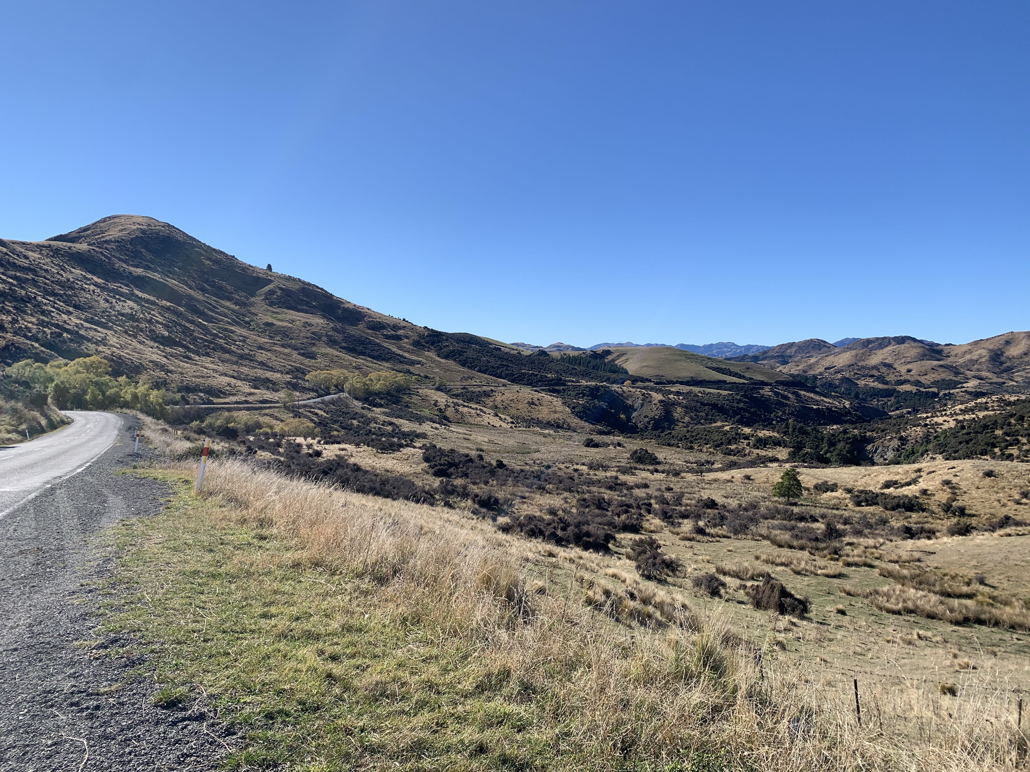 Across the Waiau River and taking Highway 70, the inland road was much quieter although still with climbing to be done.