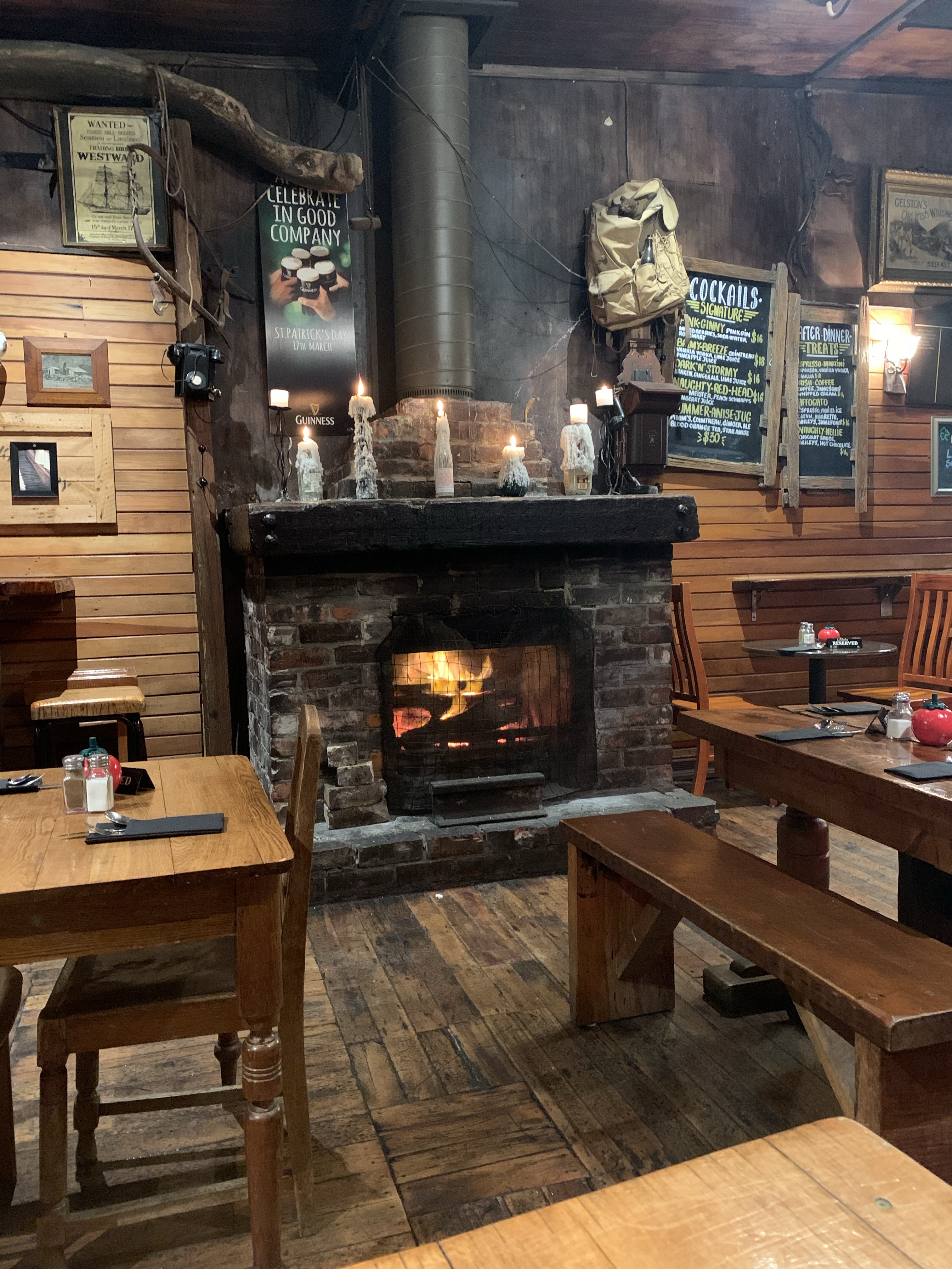 A glowing fire welcomed us at the Strawberry Tree bar for our well deserved beer and chips, having wedges tonight as the chips were not gluten free.