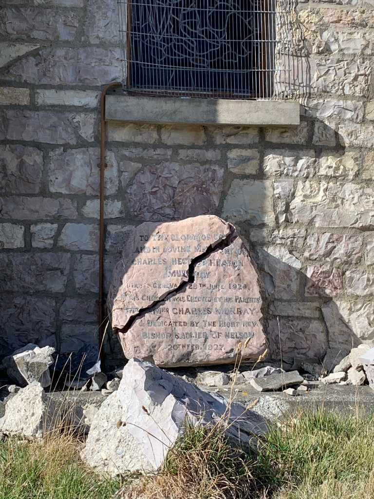 Passing the stately but earthquake affected St Oswald’s Memorial Church on the way. Built 1927 by the parents of Hector Murray as a memorial to him, and then gifted to the Nelson Anglican Diocese.