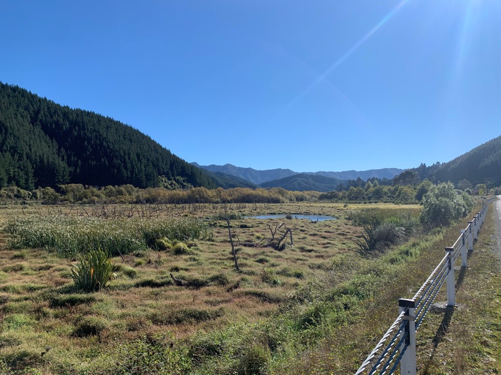 It was a gentle ride into Picton, starting with a cycleway out of Blenheim, and then onto our last southern stretch of SH1, passing vineyards and wetlands on the way