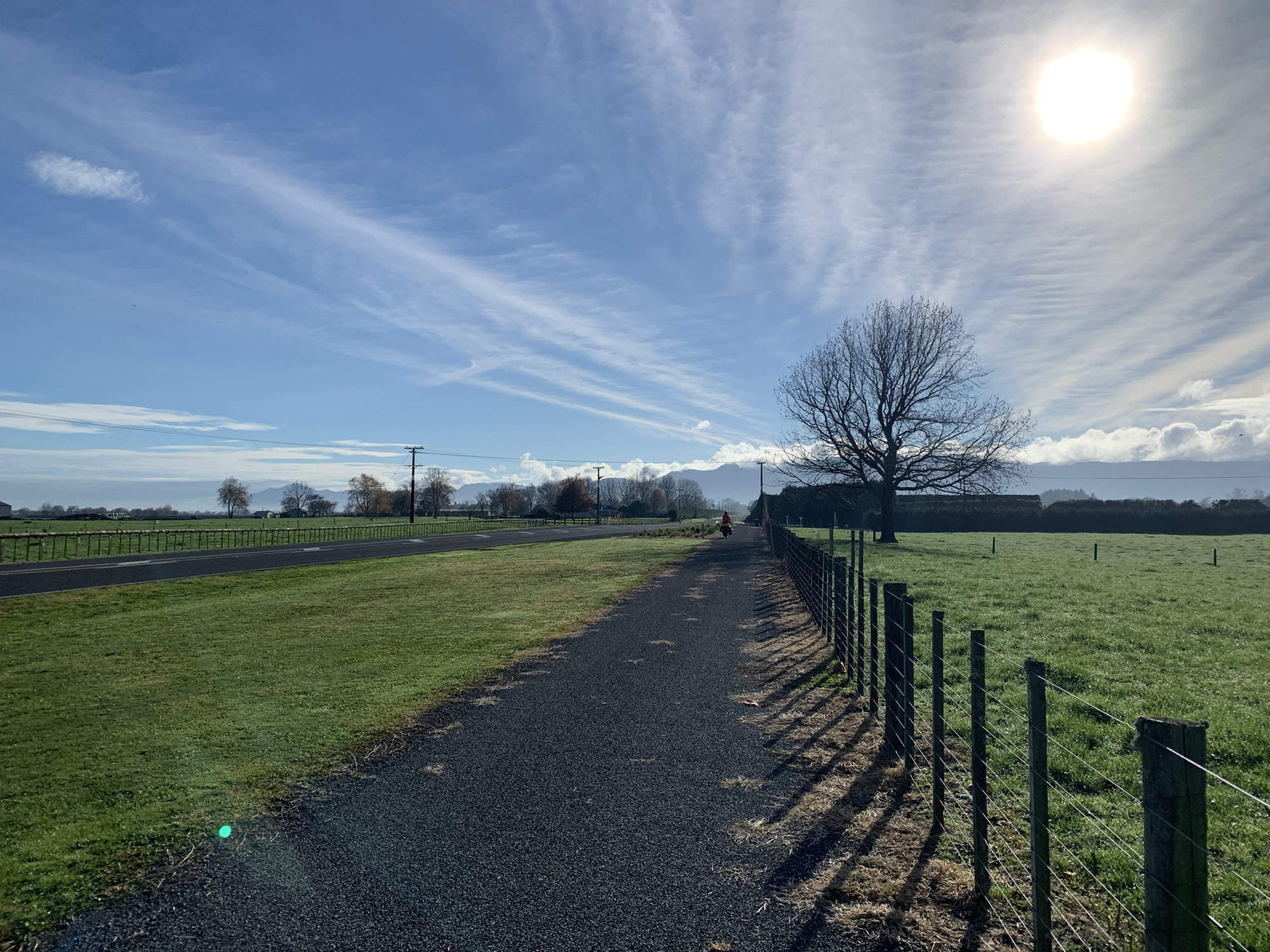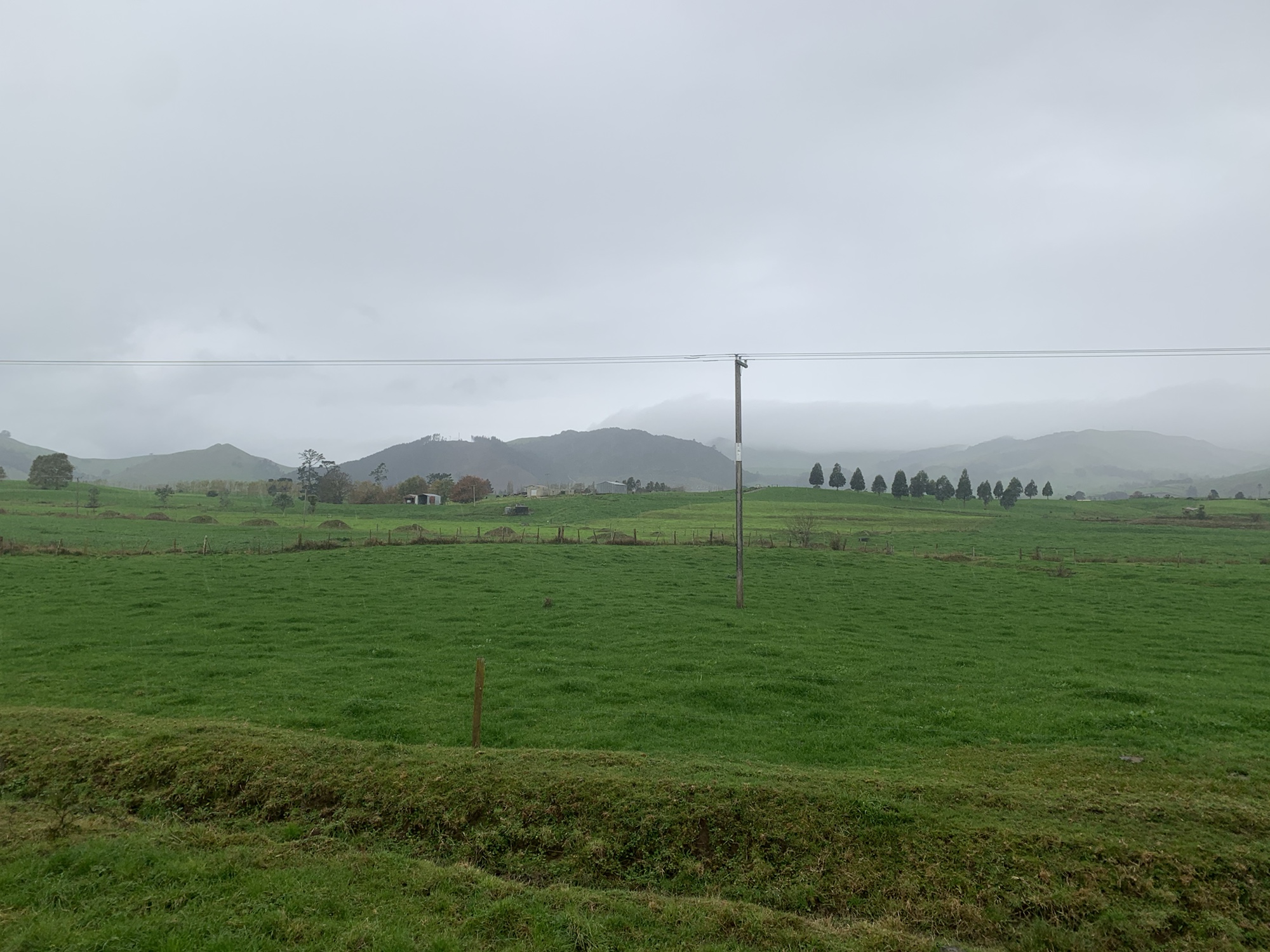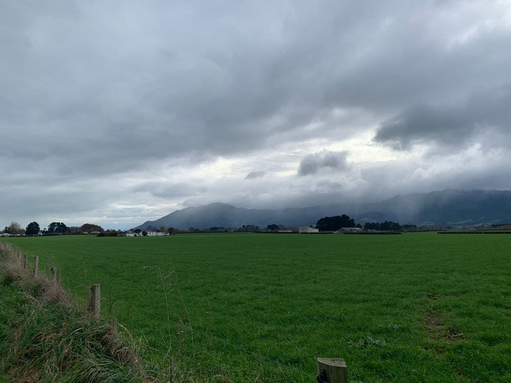 With the new day overcast, it was very similar to our ride into Paeroa, with wide green pastures and cloudy skies to accompany us.
