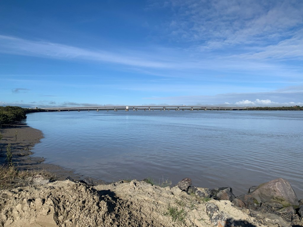 Back to Kopu, to cross the Firth of Thames, we had a better sight of the 2 bridges at Kopu. The original bridge, called the Hauraki Bridge, was opened in May 1928 replacing waka or steamer traverses of the Waihou River. A single lane bridge with 5 passing bays, it also had a swinging central portion to let the boats pass through. Traffic lights were installed in 1975 (when traffic volumes become so heavy) with the cattle crossings now banned.