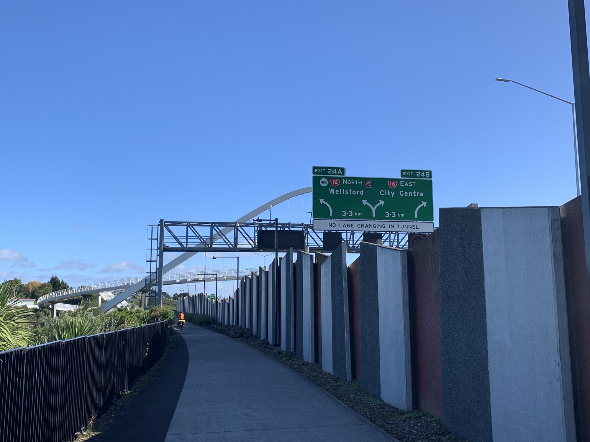 Crossing the motorway to the Onehunga Bay Reserve