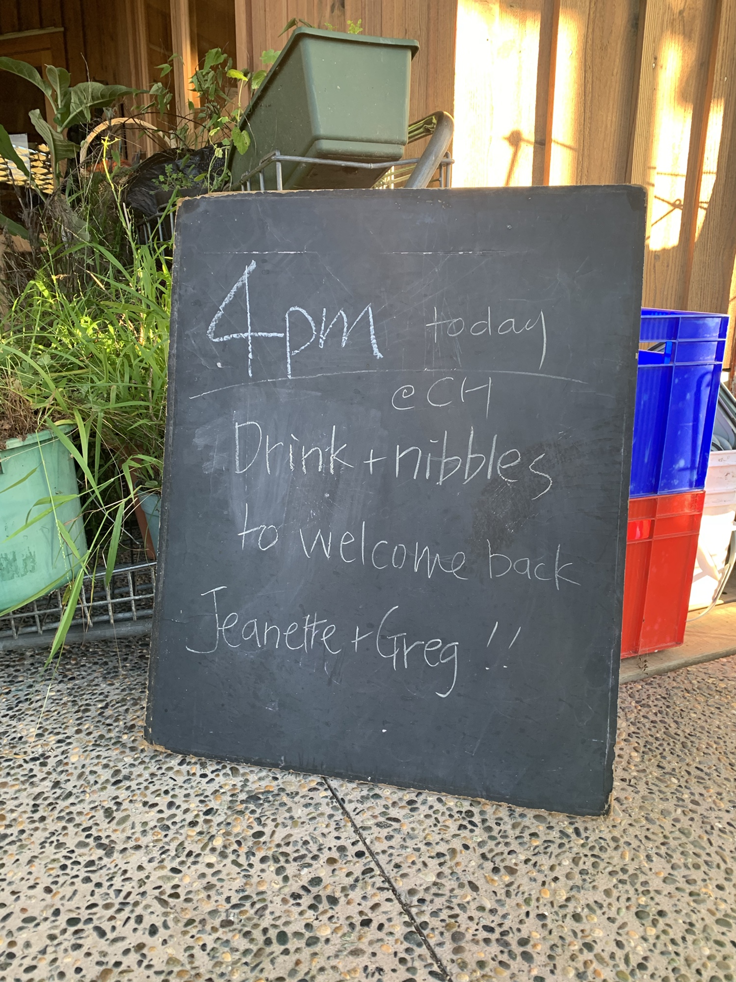 And then home, complete with a basket of deliciousness, and time for a community welcome later in the afternoon.