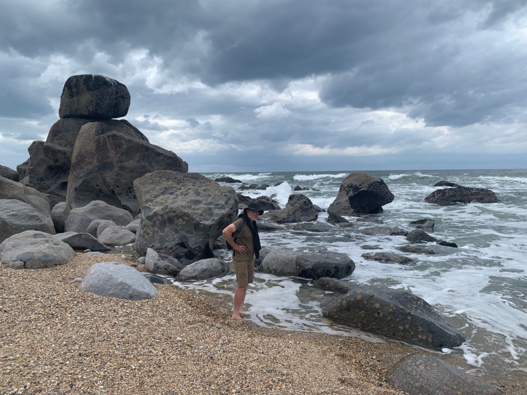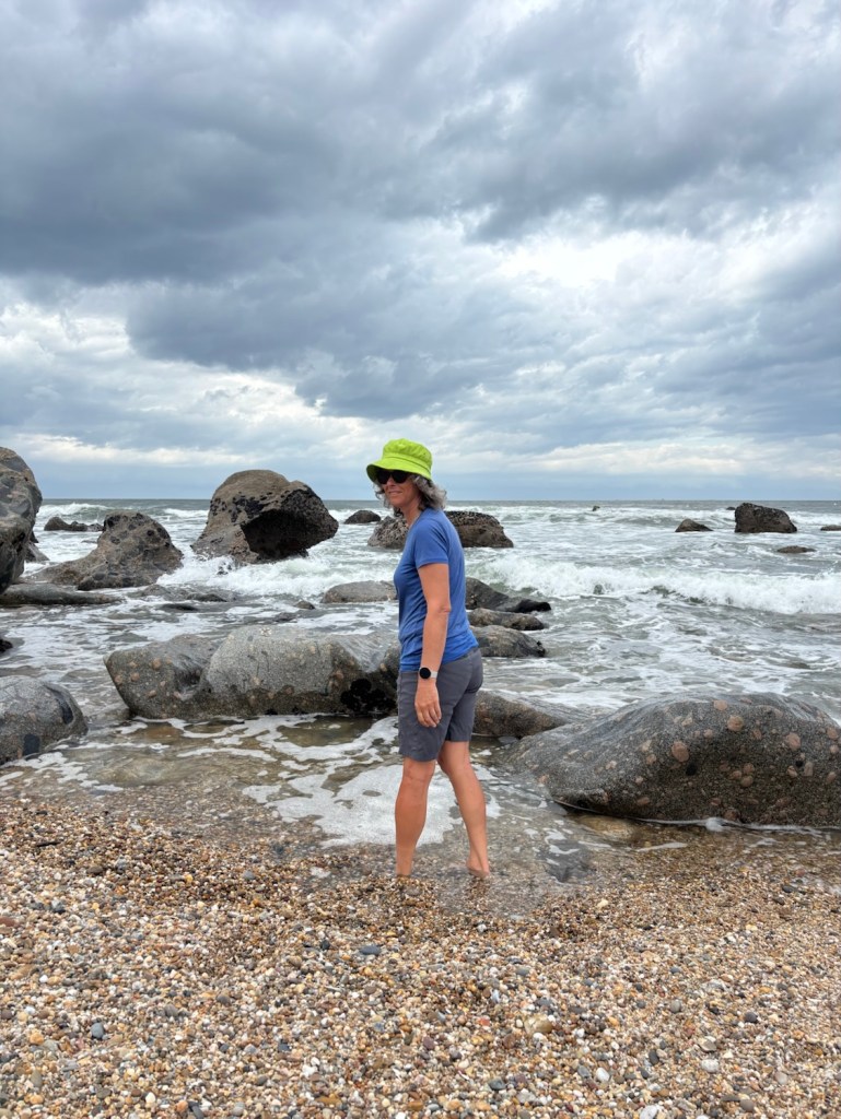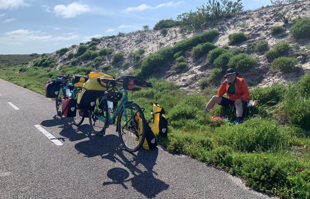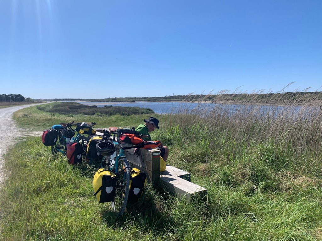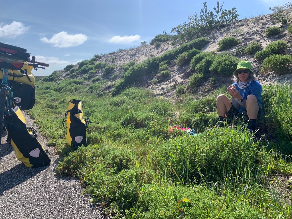 Back on the bikes, the day was sunny with a strong Nor’easter as we cycled towards the Atlantic coast.