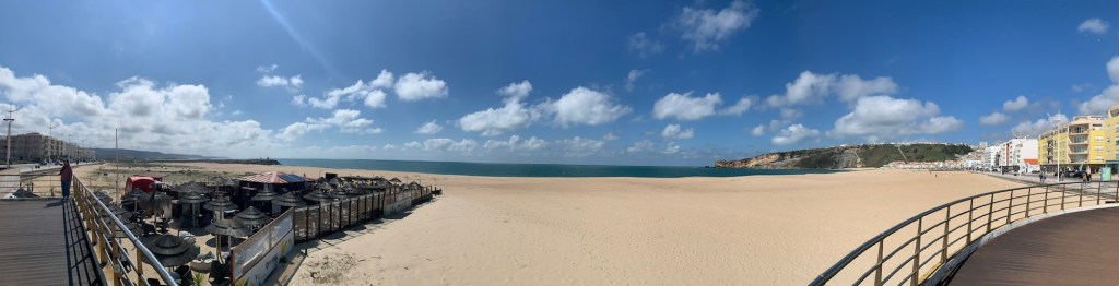 We arrived in Nazaré in time for lunch, our pre prepared rolls on the beach front.