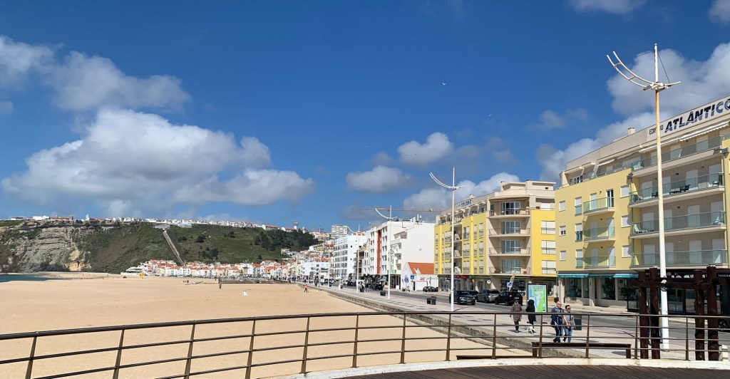 Nazaré is a surfing Mecca, renowned for having maybe the world’s biggest waves. The beach is fronted by apartment buildings with street level tourist shops and eateries. Behind these weave the more traditional narrow and steep cobblestone streets.