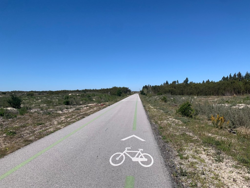 Our first view of the sea was just short of São Martinho do Porto, and also the start of the coastal cycleways.