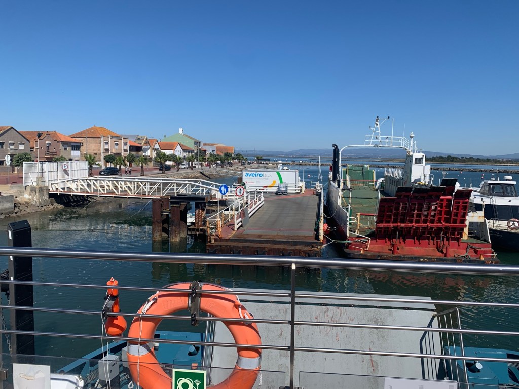 Our ride continued on an unpaved and well maintained estuary cycleway beside the Ria de Aveiro through to Gafanha da Nazaré for another ferry crossing.