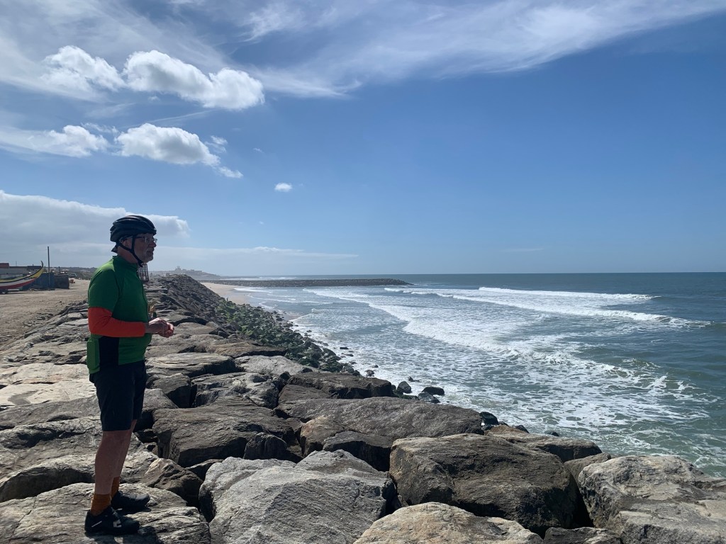 Stopping at Praia de Esmoriz for look over their sea wall which is vital to protect the lower than sea level community behind it.