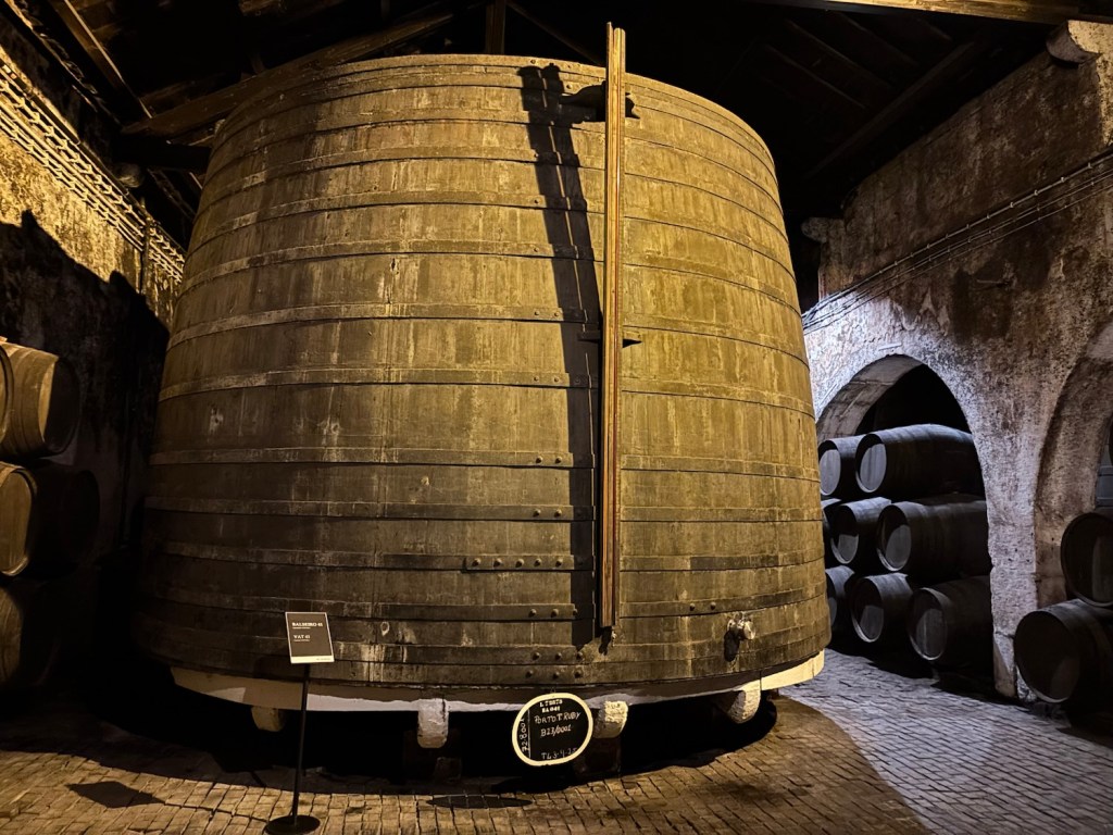 The tour through the underground cellars was fascinating, the barrels themselves, the wooden floors made up of small blocks, oriented on their end-grain to provide a resilient surface to roll said valuable barrels without damage, and also designed to be soaked with water in the summer to regulate temperature, simple and clever.