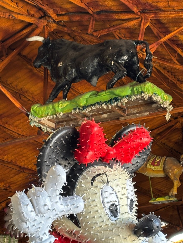 Riding through Morales de Toro, Greg noticed a large Minnie Mouse inside a warehouse as we rode by. Captured by this unusual sight, we went back to have a closer look.