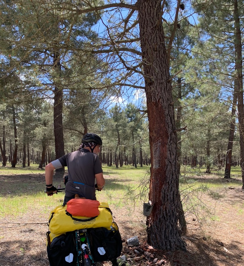 The pine trees that we camped amongst, that that this person was checking, were having resin extracted from them into little buckets.