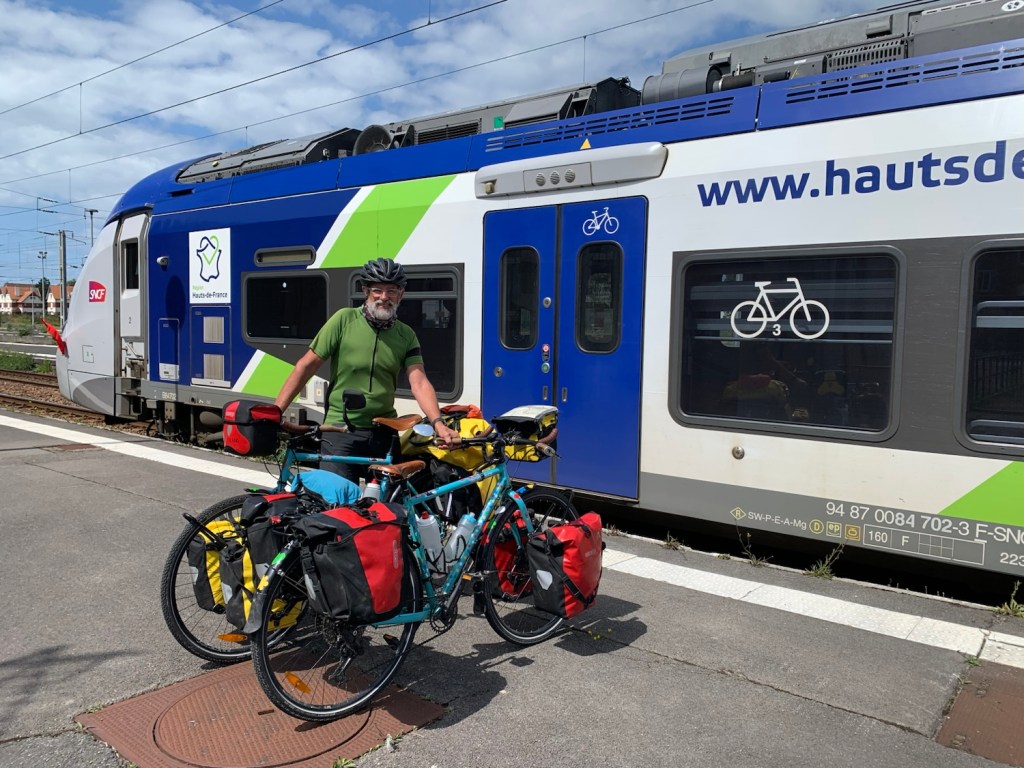 The 3 1/2 hours to Calais passed in a flash, and it was time to load up the bikes again on the platform in Calais, and head off for some lunch and then the ferry.