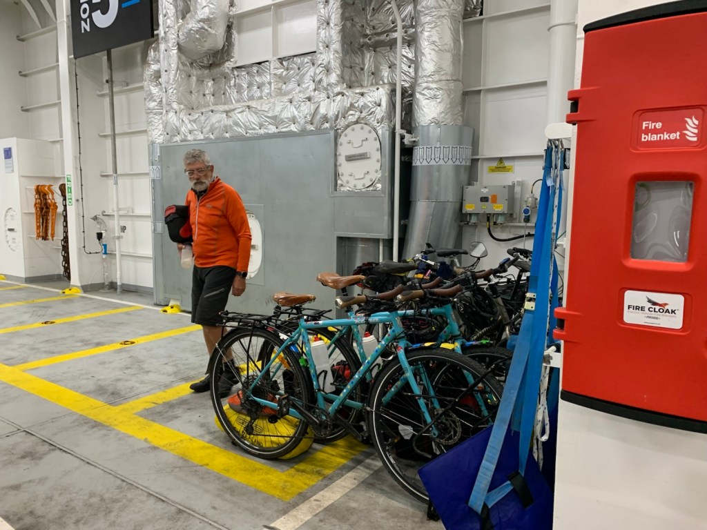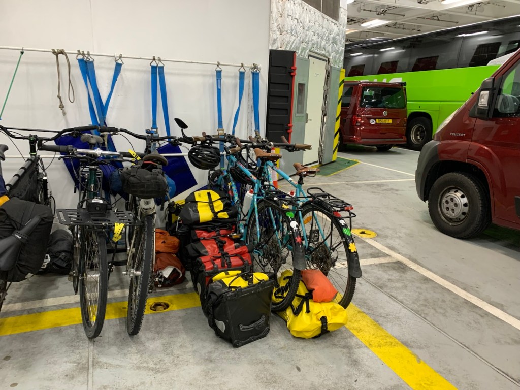 Following their example we parked up the bikes and secured them as well as we could with our panniers placed around them, and headed inside for our channel crossing.