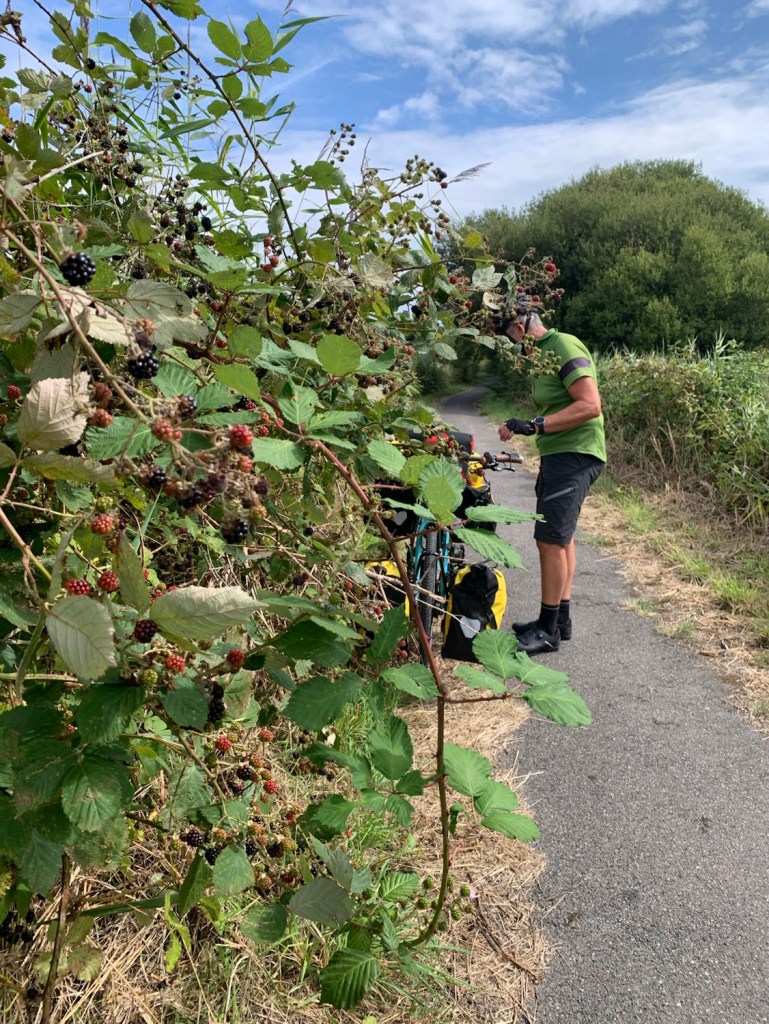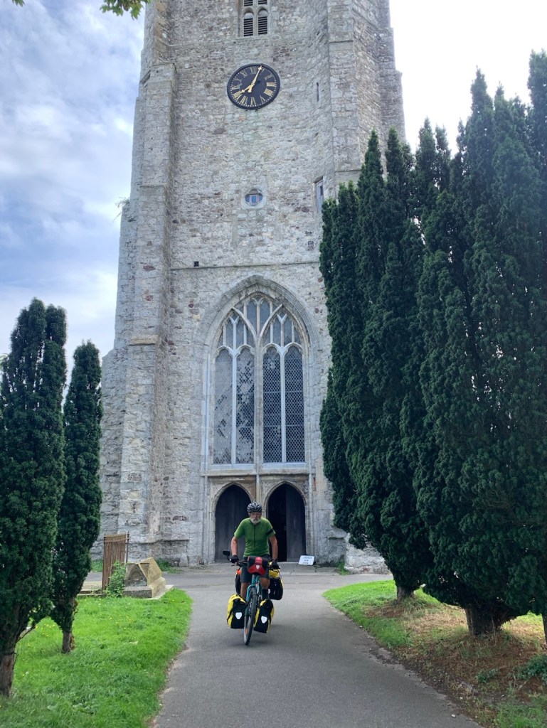 Handsomely breakfasted on our first English blackberries, we rode through the Romney Marsh wetland area, stopping for a look inside the church at Lydd. A lovely parishioner was very welcoming, giving us some welcome directions from Lydd, as well as checking if we needed water or an amenity stop before riding on.