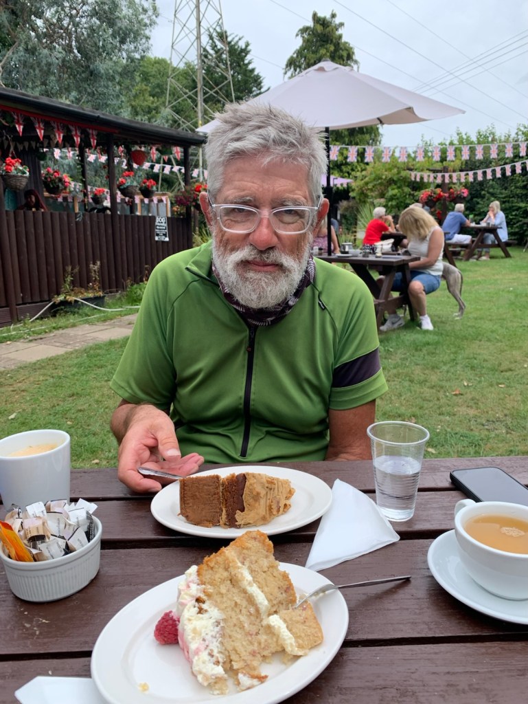 Having left the coastal route to find our campsite, we wound our back to it through some hills and delighted to turn a corner and find a tea and cake shop in the rural outskirt of Arlington. Missing our daily indulgence of patisseries, this was an opportunity not to ride past!