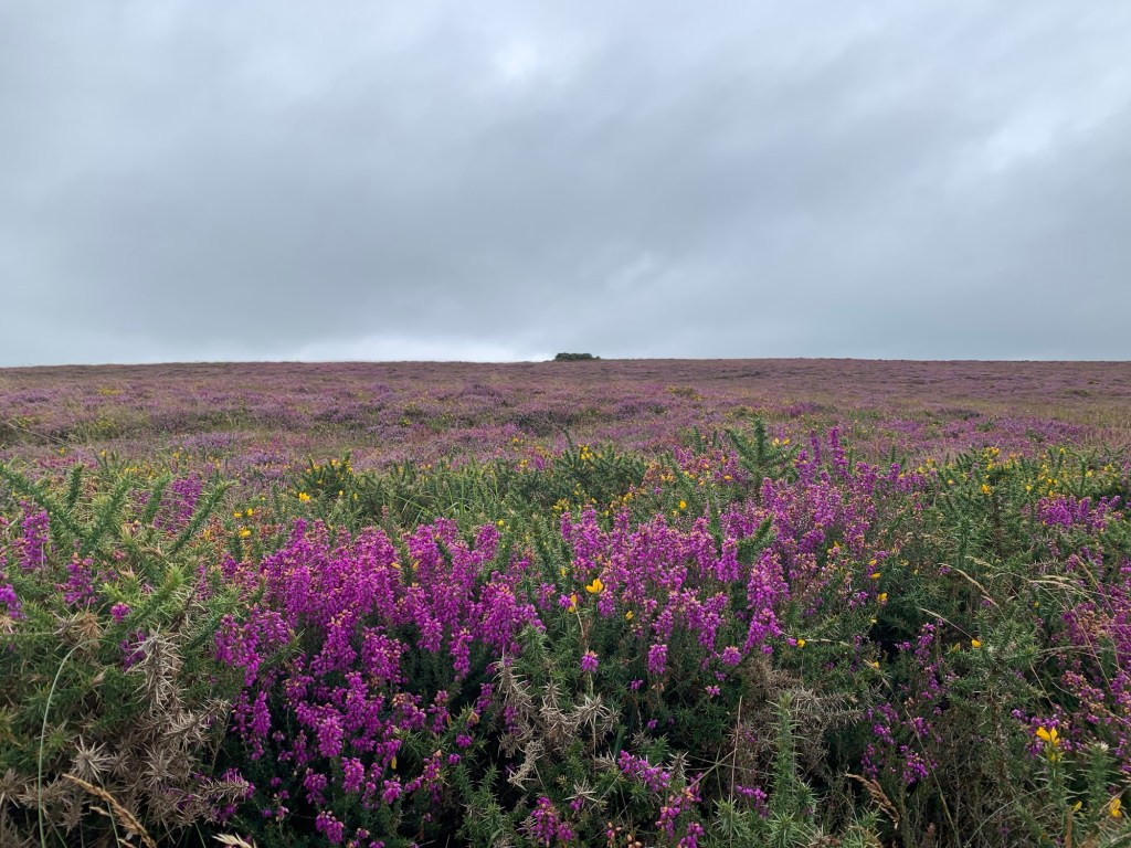 The purple heather, the rolling paddocks down to the cliffs and the vista out to sea blurring the horizon line as the clouds and the sea become one.